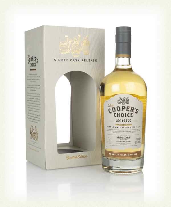 De Cooper’s Choice Ardmore 17 years old 2003 Bourbon Cask Matured is een 17 jaar oude geturfde Highlands single malt van de Ardmore distilleerderij gebotteld door de onafhankelijke bottelaar Cooper’s Choice (Vintage Malt Whisky Company). Deze Ardmore is gedistilleerd in september 2003 en heeft gerijpt in bourbon cask 801285. Deze is gebotteld in 2021 op 48,5%, non chill filtered en zonder toevoeging van kleurstoffen, als een gelimiteerde single cask release van 306 flessen.