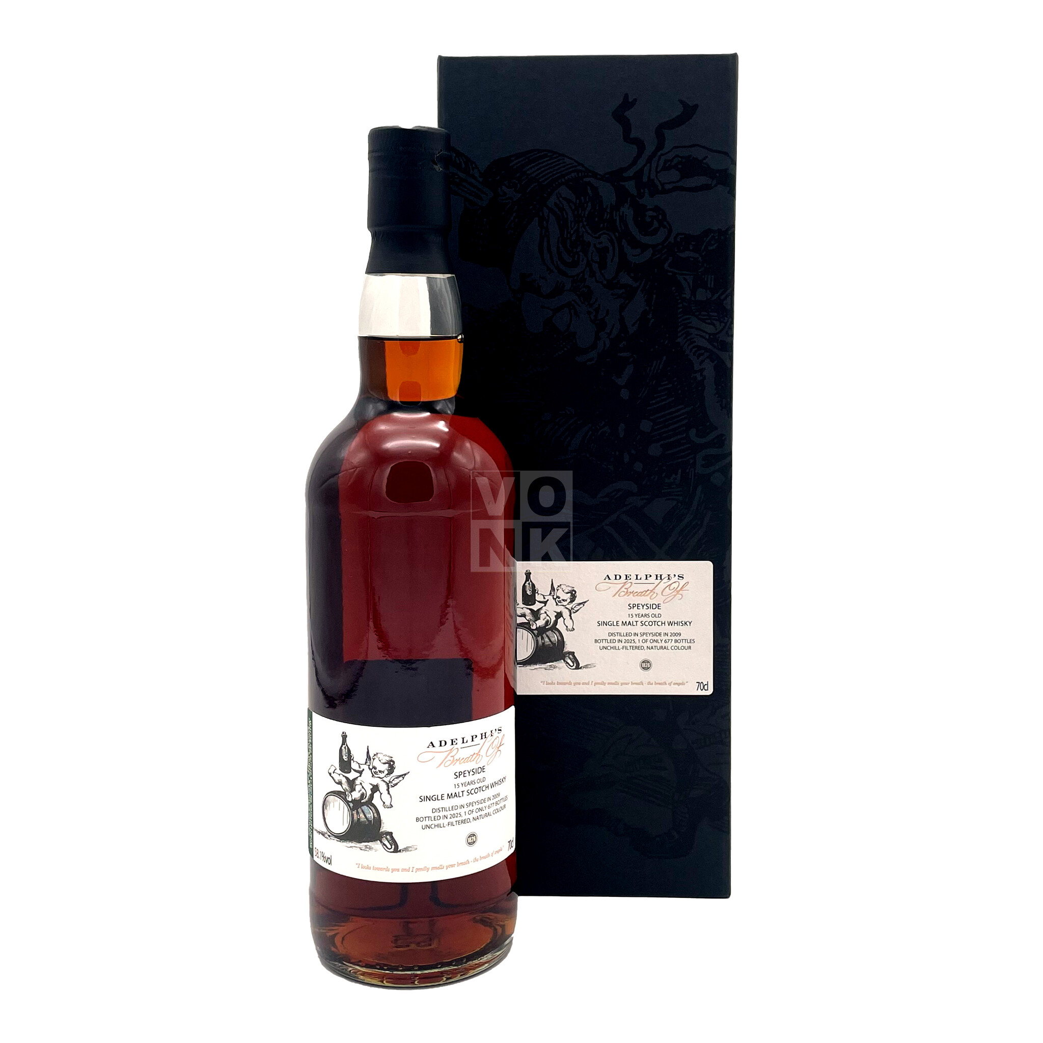 De Adelphi Breath of Speyside 15 years old 2009 is een 15 jaar oude Speyside single malt van een niet nader te noemen distilleerderij gebotteld door de onafhankelijke bottelaar Adelphi. Deze Speysider is gedistilleerd in 2009 en heeft gerijpt in sherry vaten. Die zijn in 2025 gebotteld op vatsterkte (cask strength) van 58,1%, non chill filtered en zonder toevoeging van kleurstoffen, als een gelimiteerde release van 677 flessen.