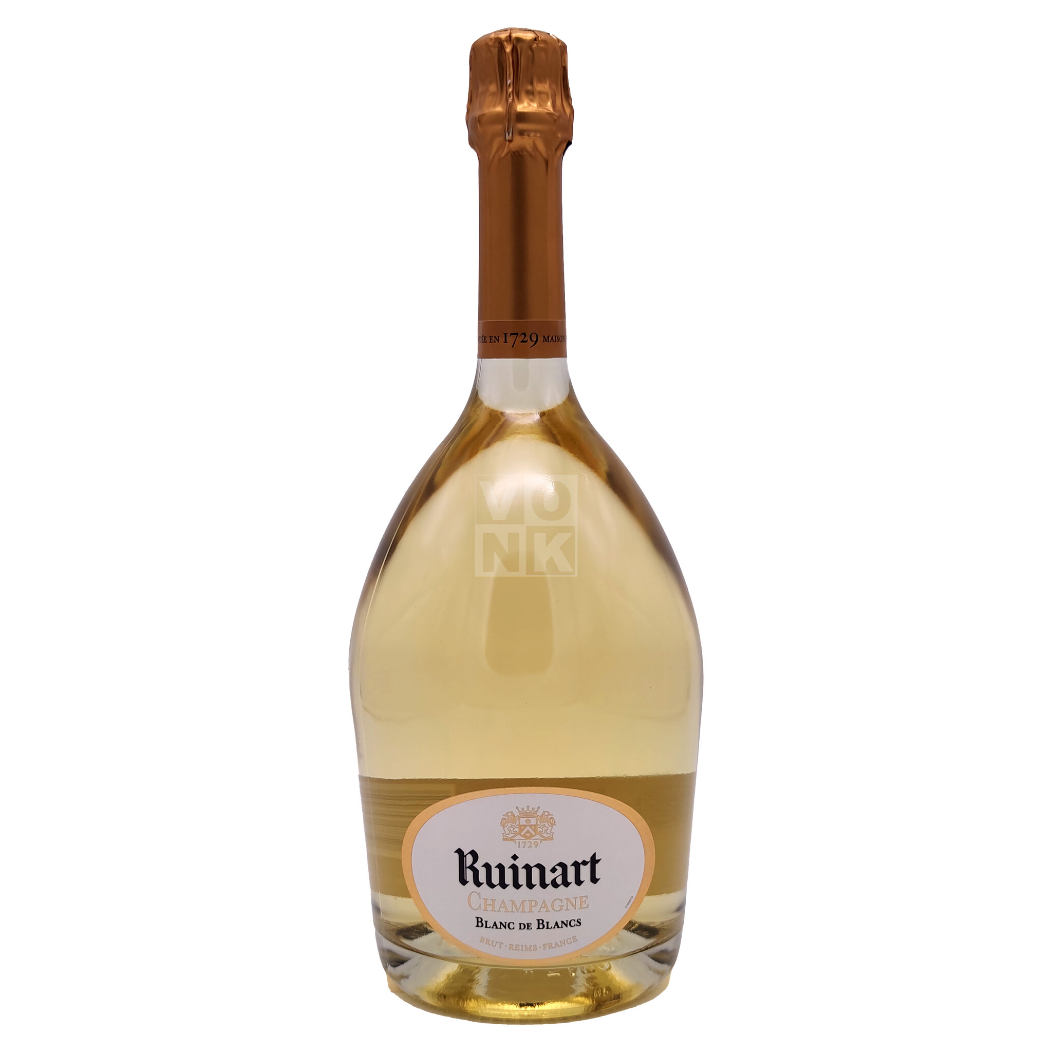 Visueel gezien heeft de Ruinart Blanc de Blancs een briljante kleur met een prachtige lichtgele kleur en lichte hints van amandelgroen en jadegroene reflecties.