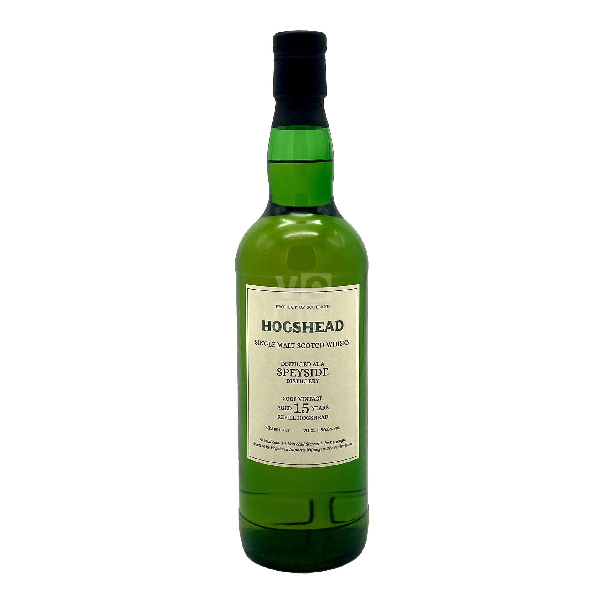 De Hogshead Distilled at a Speyside Distillery 15 years old 2008 is een 15 jaar oude Speyside single malt van een niet nader te noemen distilleerderij gebotteld door de Nederlandse onafhankelijke bottelaar Hogshead. Deze Speysider is gedistilleerd in 2008 en heeft gerijpt in een refill hogshead. Die is in 2024 gebotteld op vatsterkte (cask strength) van 56,8%, non chill filtered en zonder toevoeging van kleurstoffen, als een gelimiteerde single cask release van 322 flessen.