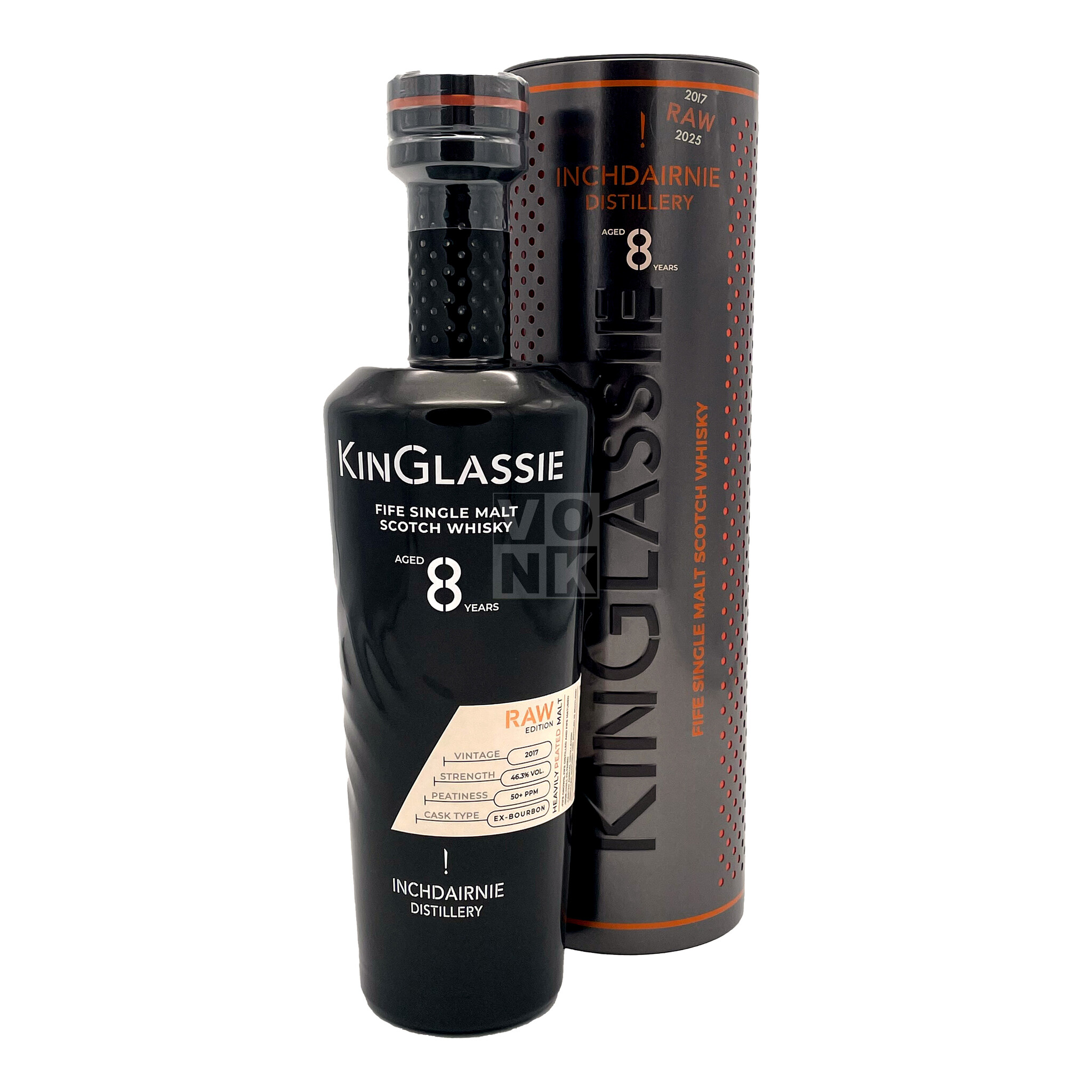 Deze fles KinGlassie 8 Year Old Raw Edition is een officiële botteling die is geproduceerd in de Lowland-regio van Schotland