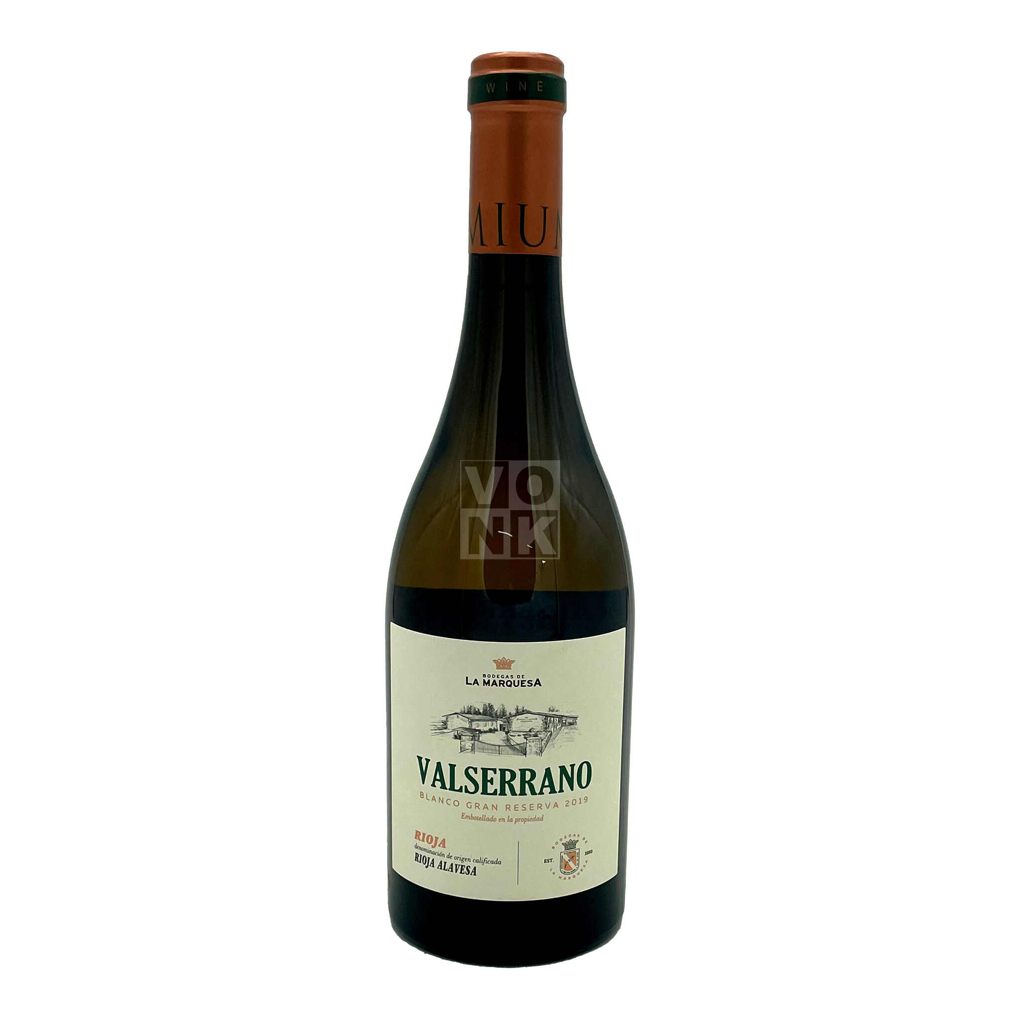 De overgrootvader van de huidige eigenaar (Juan Pablo de Simon), Marques de la Solana begon halverwege de 19e eeuw wijnen te produceren volgens de Bordeauxmethode (alleen druiven van eigen wijngaard en kleine houten fusten). Toen al werden de wijnen op fles verkocht aan geselecteerde afnemers in Spanje, Cuba en Frankrijk. Tot vandaag de dag gebruikt deze Bodegas nog steeds alleen druiven van eigen wijngaard dat een zeldzaamheid genoemd mag worden. Jaime, de zoon van Juan Pablo, de vijfde generatie, heeft onlangs zijn intrede gedaan in het bedrijf en lijkt in vele opzichten op zijn vader. Het enige wat voor hen telt is de zorg voor het land, het maken van de wijnen en de uiterst moeilijke taak van het assembleren van de 2500 fusten die er liggen. Van commercie willen ze eigenlijk niets weten. Men weet dat ze tot een uitstervend ras behoren. Misschien is dat wel het unieke karakter dat de Valserrano wijnen zelf ook hebben? De oppervlakte van het wijngaardareaal van Bodegas de la Marquesa beslaat vandaag de dag circa 65 hectare gelegen op een hoogte tussen 450-500 meter. De helft ligt dichtbij de bodega en is verdeeld in 3 stukken: 12 hectare, ten noorden, heeft vrij veel kalk in de grond met wat klei. Vroeger stonden hier voornamelijk witte druiven, want de grondsoort is er perfect geschikt voor. 17 hectare vindt men hoger gelegen op een plateau achter het dorpje. Hier treft men meer zand aan, en een deel (4 hectare) wordt beschermd door een bos met pijnbomen dat door de vader van Juan Pablo in oorsprong was aangeplant voor de productie van houten kistjes. Van deze wijngaard wordt Finca Monteviejo gemaakt, een top Rioja met een uniek karakter